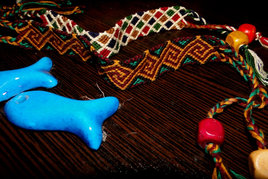 فعلاً عکس از تابلوهام ندارم. عکس دستبندی که برای همسر بافته بودمم، ندارم. ولی این دو تا رو قبلاً بافته بودم و به دوستام هدیه دادم.